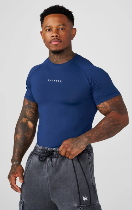 Camiseta clásica de compresión diseñada como top deportivo ajustado. Diseñada para adaptarse a la parte superior del cuerpo con una silueta atlética y definida. Presenta un escote estructurado, una confección suave y un logo YoungLA minimalista en el pecho.